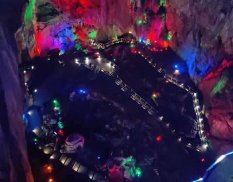 基本上新手肯定不敢开[笑哭]路面的程度轿跑就不要轻易尝试了 suv坐着还可以 提前买了票 比现...过去的路很难开 基本上新手肯定不敢开[笑哭]路面的程度轿跑就不要轻易尝试了 suv坐着还可以 提前买了票 比现场优惠十几块钱 到了检票处之后 需要爬山上去入口处 写的是280米 其实不是长度 是高度 比较抖爬起来还...过去的路很难开 基本上新手肯定不敢开[笑哭]路面的程度轿跑就不要轻易尝试了 suv坐着还可以 提前买了票 比现场优惠十几块钱 到了检票处之后 需要爬山上去入口处 写的是280米 其实不是长度 是高度 比较抖爬起来还是挺累的 不过也不是太长 一般人都可以承受的 夏天过去爬上去一身的汗 但是洞里很凉快 小朋友体质不好可以带一件外套以防感冒 里面比较潮湿 进去后需要走一个台阶下去 沿路都会有小蝙蝠 但是不会碰到人 开始观赏 算是去过很大的洞了 跟着导游慢慢逛逛玩玩 这一个过程大概在1个小时以内就可以玩完了 总体四分 是一个可以去一次的景点 当然 如果对这个完全没有兴趣得人可能就觉得一般了 不过出去玩就是为了体验各种不同的感觉 所以 放宽心 享受整个过程就好了~ 展开