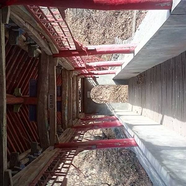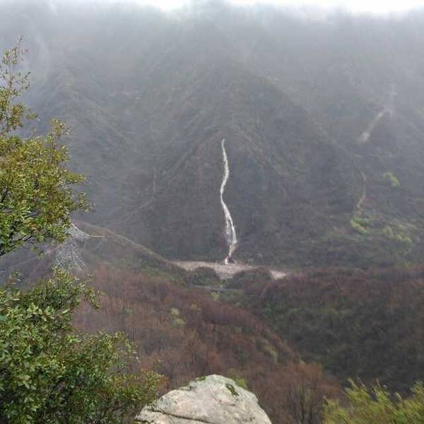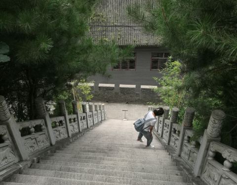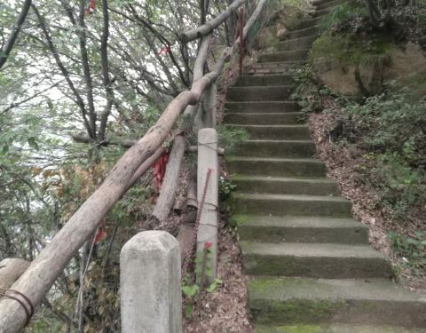 大散关景区大门前的清姜河。没拍大门,在修,全是脚手架和围布。路又陡又窄,危险的地方都有围栏。走上一段,就会有一小块平地,有的还有石凳,供游人喘口气。