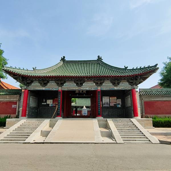 孙武祠就在广饶县东营历史博物馆旁边,由4个相互通连的仿宋式建筑组成。院内有一壁刻,书有确认孙武故里—齐国乐安就是广饶的《史记》 、《资治通鉴》等史书文献的记载和若干考证。院正中是高3米,一手拿竹简,一...