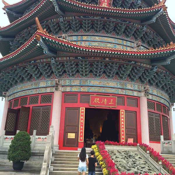 主要建筑:三清殿;太和楼.三清殿是圆玄道观的主体建筑物,采用古典天坛形式建造.三清殿东南边的一座三层绿色的古大楼,称太和楼 位置介绍:广东圆玄道观坐落于广州市花都区新华街九潭村,离花都市区只有几公里路程 门票:圆玄道观的成人票仅需20元,未满18周岁或者持有学生证均可以打半折.门票是一个长方形的硬卡片,刷二维码进入 院内很干净,时不时可以看到来这边烧香祈福的人.因为避讳,观内有些地方不让游客拍照.第一次看到这么大的道观,心中顿时升起一种敬畏感.天坛形的建筑风格更加增添了一种富丽堂皇的庄重感.观内有道士在练太极,以前只在电视剧见过的场景现实生活中见到了感觉很不一样一进道观便可以看到一尊几米来高的老子塑像,水池也经过人工喷雾,营造一种仙气之感,观内的建筑很讲究,是个值得一看的景点,出了景点之后在入口还有纪念册可以拿,是宣传道教的,纪念册里头也有圆玄道观的历史记载,比较精美