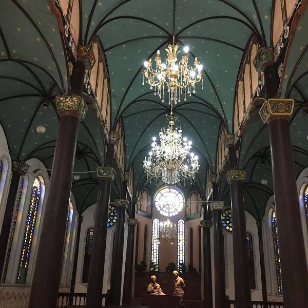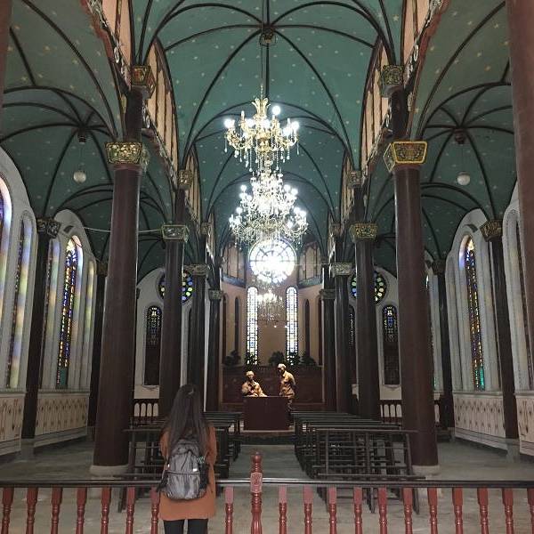 整个遵义绿化都不错,当然这里也不例外,罗马式教堂⛪和周围的中国传统建筑搭配不觉得违和,只是,教堂中间那几个水晶吊灯有点怪怪的