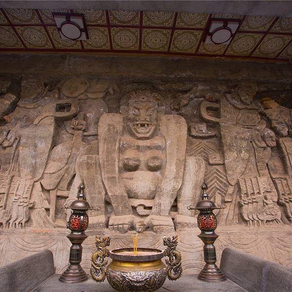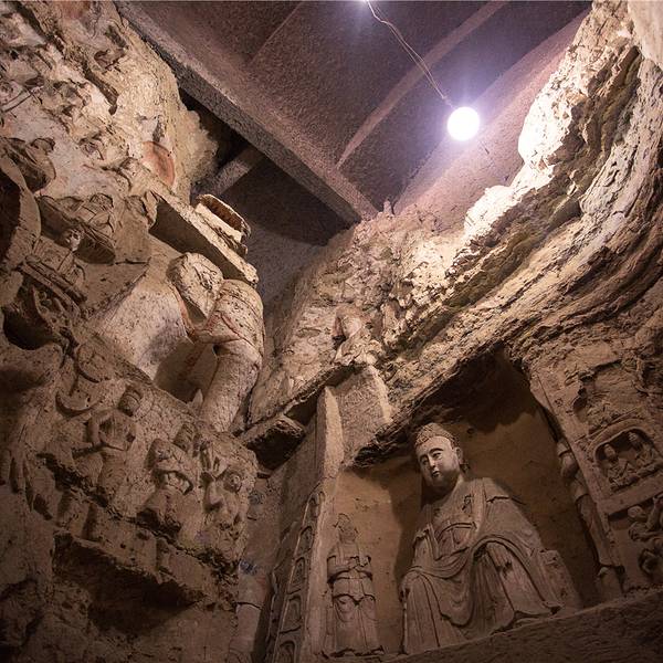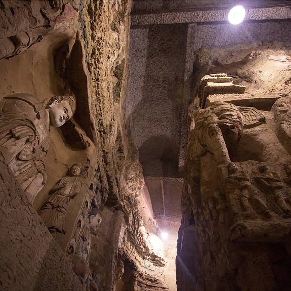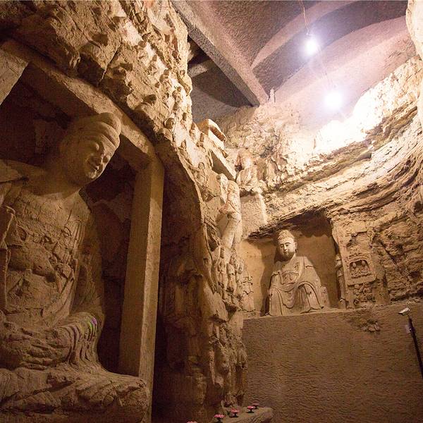 石窟二层已经封闭了,只能进入一层看看,不过灯光实在太暗,ISO2000都用上了 展开