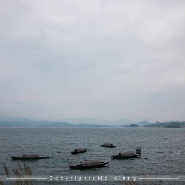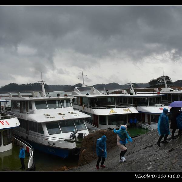 从下船到开船,导游给了不到一个小时的时间。我大踏步上山大踏步下山,临上船之前看到湖面上乌云翻滚,就算有点层次吧,又耽误了会儿时间拍照。这样,等我踏上“清溪号”游轮后,没几分钟就发船了--