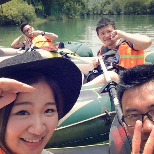 值得一提的是烧烤后的皮艇,差点让我们命悬一线。六个人三艘皮艇,本应顺着河流往下漂,但是出发前老板千叮咛万嘱咐不要划得太远,因为往下有急流,比较危险。但是,待我们发现自己已经快到急流的时候,已于事无补。就这样,在贵阳下午2点的烈日下,手足无措的我们在漩涡中挣扎了将近半个小时,但一与岸边参照物对比,没有丝毫前进,简直绝望。最后,风哥说,要不我们放弃回去,就让船往下漂,过了这个漩涡,我们赶紧靠岸。事实证明,这个想法是相当正确的,最后的最后,又白又帅还会划船的强少,凭借着勇气、力量、智慧,当然还有丽君爱的鼓励,以一人之力,将三艘皮艇一起拖向岸边。 展开