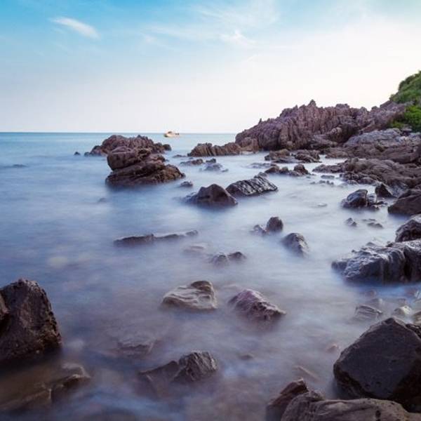 怪石滩位于 防城港 市 江山 半岛景区的南端,景如其名,这里的海滩系海蚀地貌,分布着成片的石滩,怪石嶙峋,沟壑纵横,形状各异,当地居民因此取名怪石滩。因石头呈红褐色,又有“海上 赤壁 ”...- PM 傍晚看日落