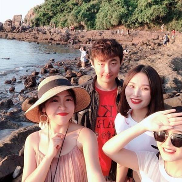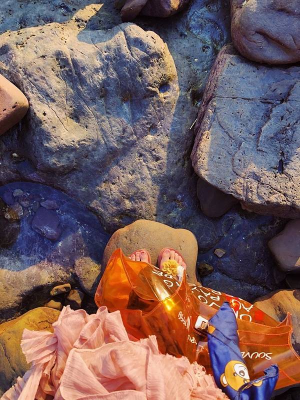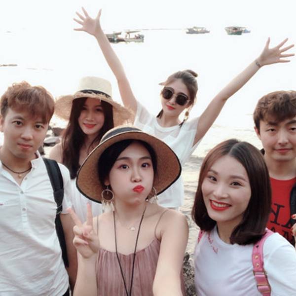 只走了三分之一的石滩的我们 ……可怜巴巴,日落后,让一个路人妹纸帮拍了两张大合照…… 展开