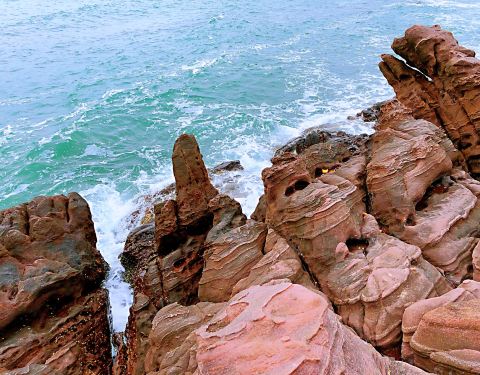 怪石滩距离大平坡不远处,因常年海浪冲刷岩石而形成了海蚀地貌,石头怪异且多呈褐红色,故又称海上赤壁怪石滩距离大平坡不远处,因常年海浪冲刷岩石而形成了海蚀地貌,石头怪异且多呈褐红色,故又称海上赤壁。这儿独特的岩石带来了更多玩点,也让爱摄影者寻到了更美的素材。