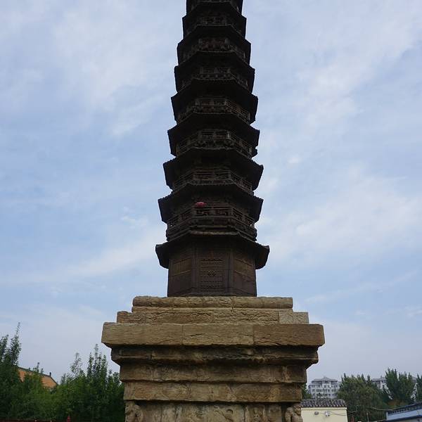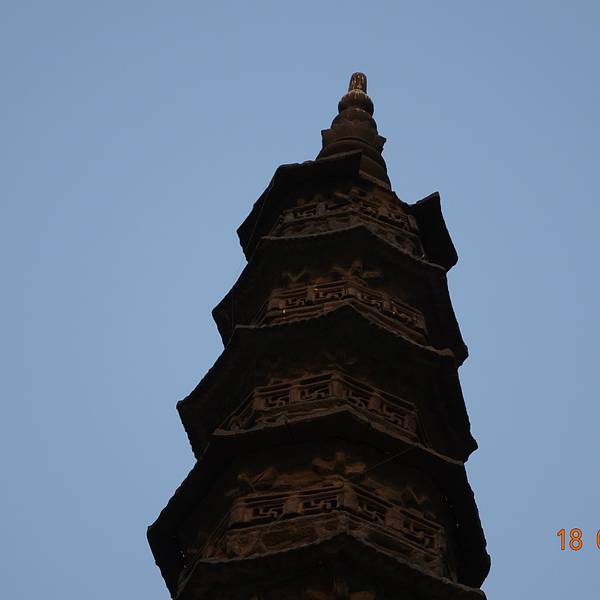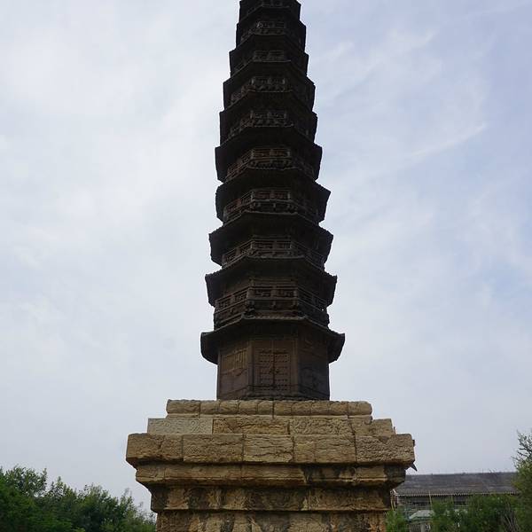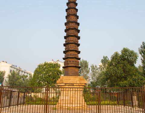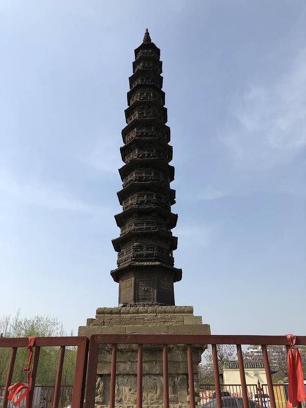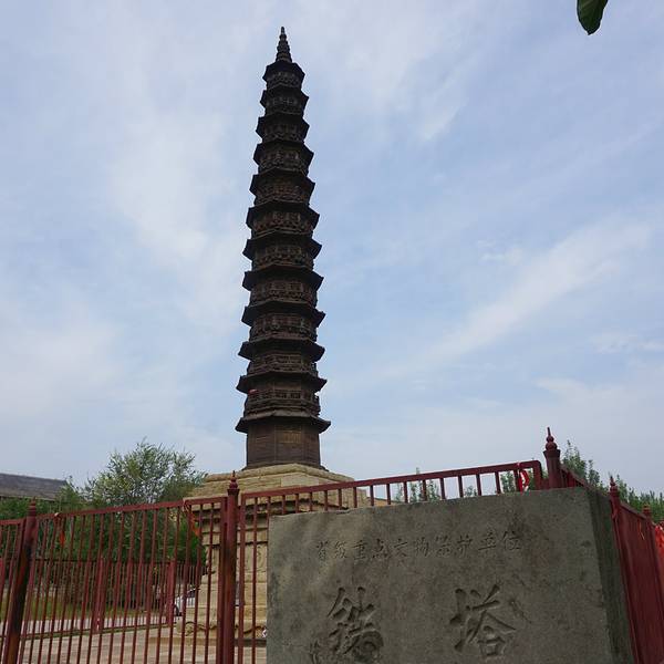 原塔虽为铁制,终究没能抵挡住岁月的侵蚀,大部倾圮,仅存底部五层。现在所见的铁塔是用地下挖出历年坠毁的塔身及塔顶整修复原而成,虽然比原来少了一层,也还算是原汁原味。 展开