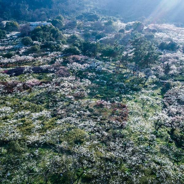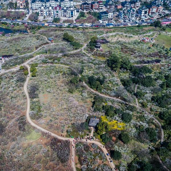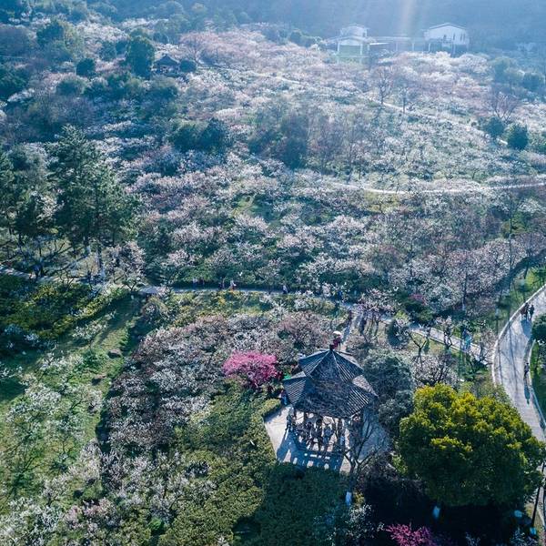 距离6公里的塘栖古镇,可以去看看广济桥,水北街,快5、6月份的时候可以赶上塘栖枇杷节。今年是第十届梅花节了,前来赏梅的人络绎不绝。来一张东园梅花的全景。东园风光北园的红梅比较多,开的是蓝天红梅,甚是壮观。东园的白梅争相开放,绽放风姿。来几张高空下的超山景区和小白线周边。可以看十里梅花香四海的场景。东园进门口有个大草坪,可以放风筝,坐着野餐的。有活动也会在这里举行。小白线两旁的湖和一座叫龟山的山。东园的山路上去有个小寺庙的,不过这里也可以出了超少景区的,会有保安叔叔守在路旁的。上图就是北园里可以观赏唐梅和宋梅的地方了。放几束单独的梅花欣赏下。