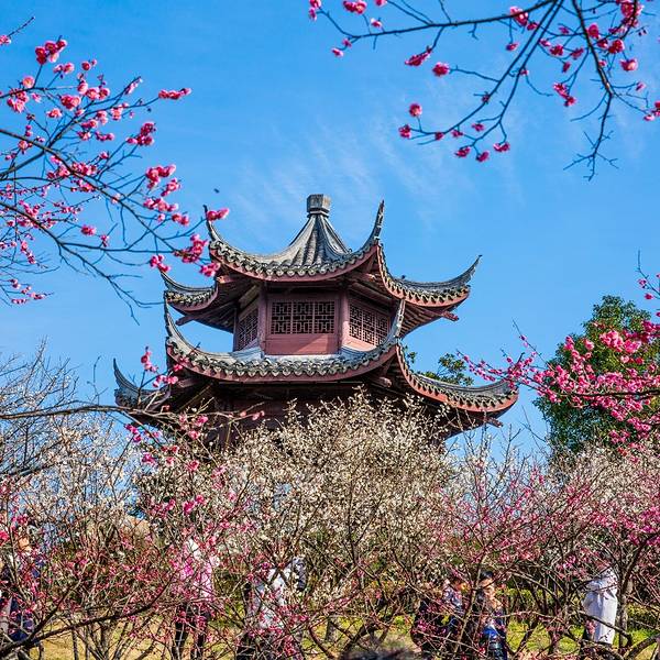 超山风景区位于杭州市余杭区塘栖镇超山村小白线附近,梅花盛开时,是个观赏梅花的好去处,每年梅花开放的时候都有“实力梅花相似海”的大场景。现在每年都会有有超山梅花节,对应的有很多活动,今年已经是第十届梅花节了。超山是江南三大探梅圣地之一,中国的五大古梅,这里就有唐梅和宋梅。在北园就可以看到这两大古梅了。