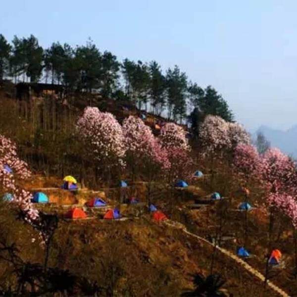 花溪景的羊角花正是绽放之时,晚上露营花间下,第二天一睁开眼就看到羌族象征爱情的羊角花。