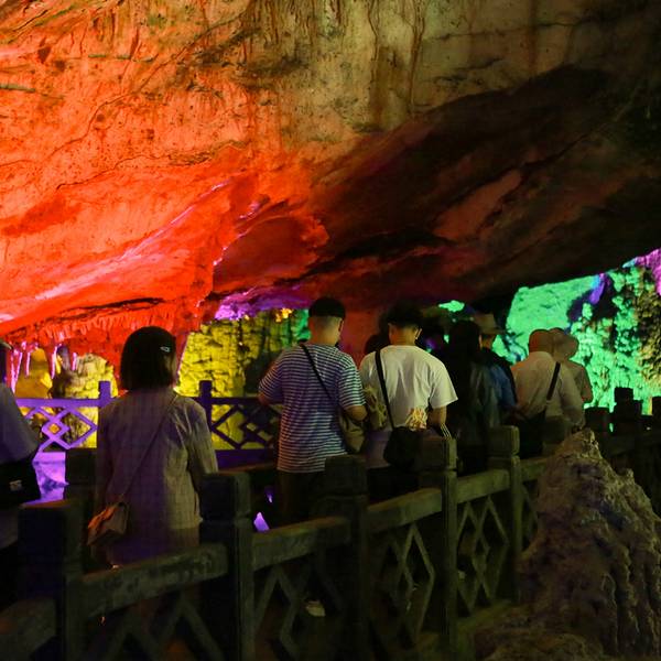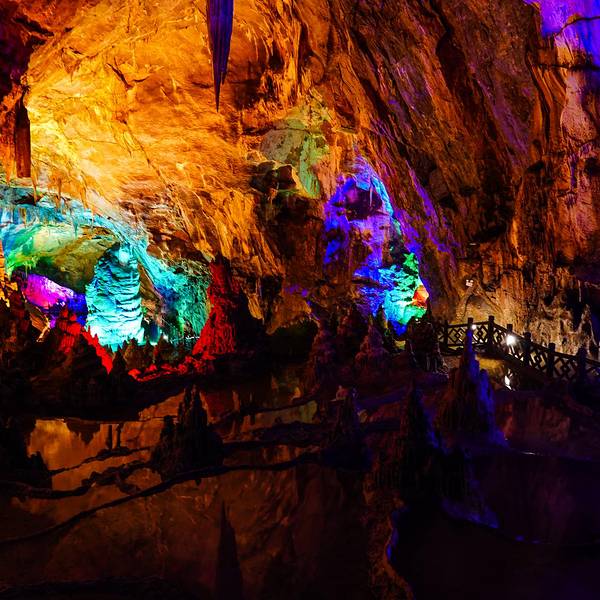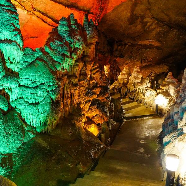 走进这五彩缤纷的溶洞之中,无不赞赏起大自然的鬼斧神功。猿王洞中有“串珠缀玉”、“珍珠 白玉 塔”、“ 石林 秀色”、“瑶池洞天”、“绝壁石琴”等数百个格调不同的神奇景观,景观亦真亦幻,被游客称作梦幻宫殿洞中 黄龙 美景。 展开
