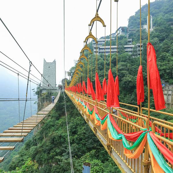 羌情园索道口旁边就是走路往情人桥方向的台阶。一路向右很快就到大禹文化园,然后向下走,在穿过几个建筑,一路向山下走。情人桥附近还有溜索和索道可以...前山留半天时间就可以了,情人桥,猿王洞那肯定是必须去的