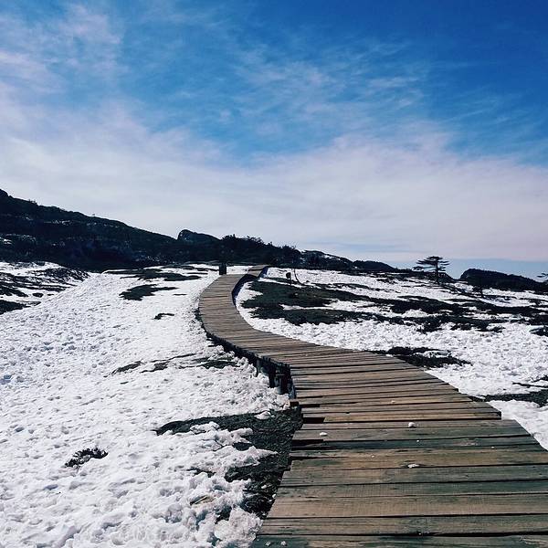 拼车费用:350元/人,还包括索道的费用。轿子雪山入口处要坐一程索道,然后才开始爬山从昆明到轿子雪山的车程是两个多小时的样子,到了景区入口处有一些防寒衣物可租赁,衣服穿不够的可以租。不过就是有一点需要提醒,租的时候会付一点押金,尽量不要压太多,而且要留档主的电话。在这件事情上,我就差点被骗。租了一件棉衣,上山玩了一圈后才发现棉衣有问题,那时候我在想档主会不会拿这个来敲诈来。下山后,才发现人家连摊子都不见,周围其他档主看我的眼神就是一副我被人骗了的神情。后来东问西问才找到原本档主的妈妈,从她妈妈那里退衣服拿回押金。缆车后便沿着台阶一步步爬上去一路上各种积雪因是初春,所以有些雪已经快化了只有树林里有少量的雪雪对于南方孩子,是觉得十分惊喜的。半山上一片空旷,很壮观,有一种前不见古人后不见来者的荒凉感。人在自然面前显很渺小。天池,一半池水,一半结冰游客站到冰上玩试一下躺在雪上的感觉 展开