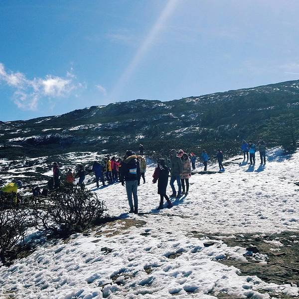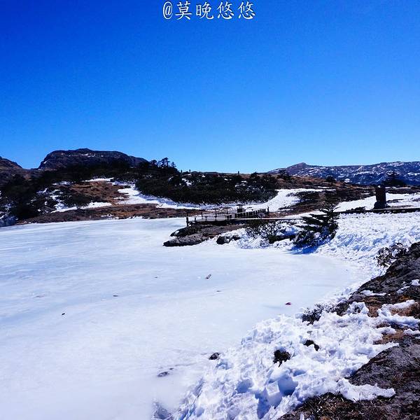 凭栏静悟,小楼记当初。这是我们下车后见到的第一处积雪,在景区售票大厅对面,十多米的一个小丘,周围是各种小吃摊档。由于山高路远,在山下往上看,以为山上的雪也至多如此,没想到山上的风景如此美,在游人如潮的情况下,还有无数无人踏足的大片过膝完整雪地,顿觉来回8小时的持续晕车是值得的。 展开