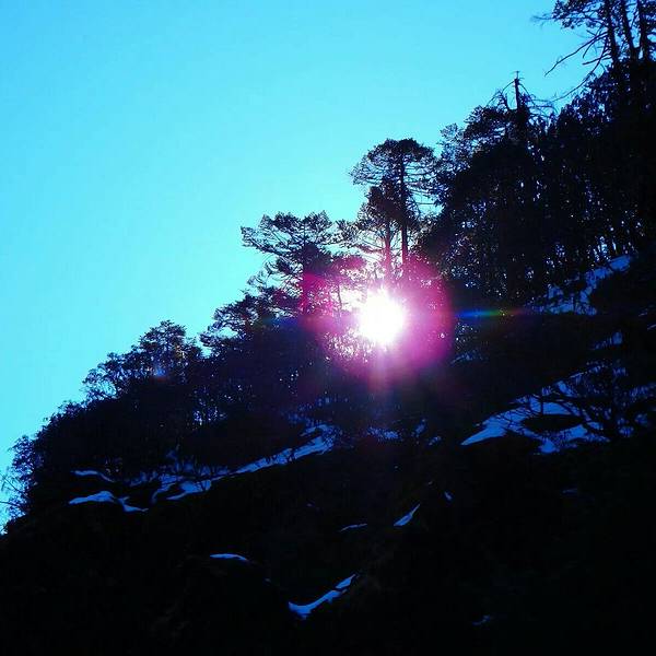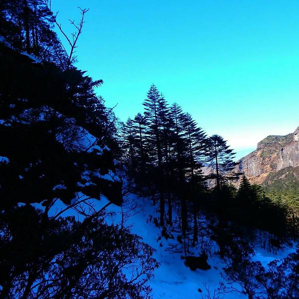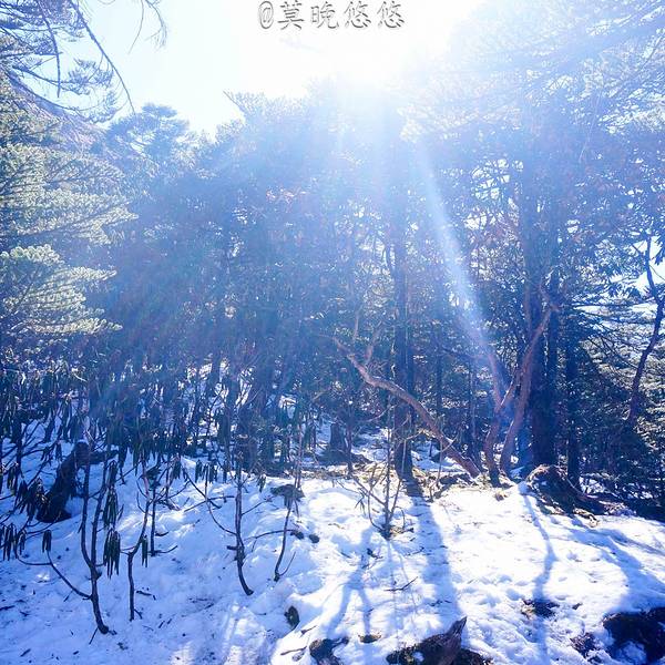 我们兴奋不已,平整的地表只有你我的足迹,心醉雪满山,不觉 日光 寒。绵软深厚的雪地,美得让人失去思考的能力,只想幸福地瘫倒在这一片纯白里,纵身陷入这轻柔的甜蜜,寒枝叙冬意,诗情满雪地。风卷千林初雪晴,轿子山下松微明。