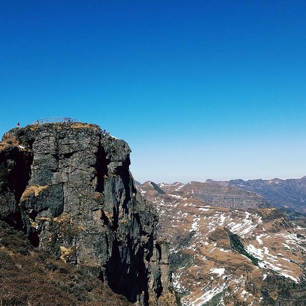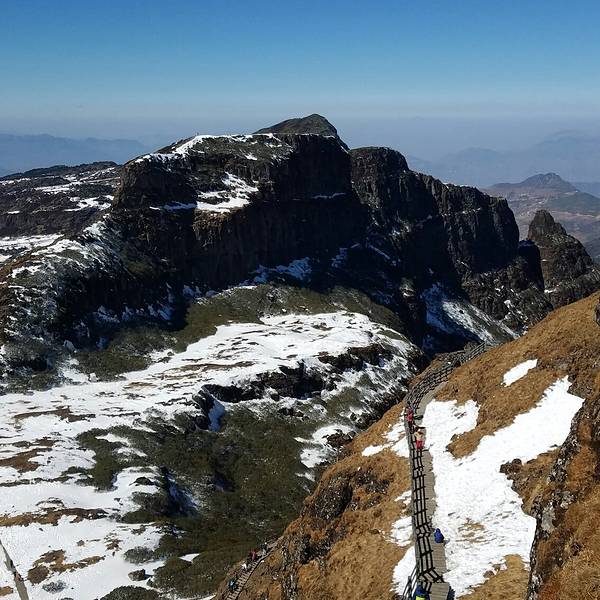 距离昆明市区最近的雪山,春季有杜鹃花海,冬季可以攀冰登山。