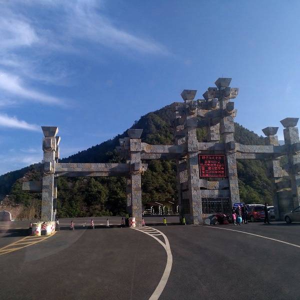 ...票,没拍缆车票,因为缆车票在网上不打折,而且有攻略说买上行的就可以了,下行一路风景,徒步更合适这是车辆进山购票的山门。到景区大门还有10公里。