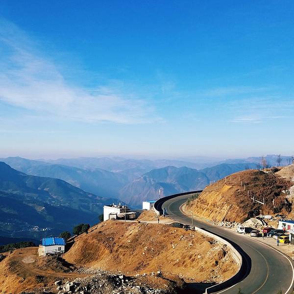 一座座零星的点缀着山边的路,