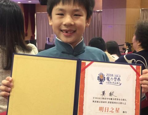 经过多场别开“声”面的精彩角逐后,2018上海青少年魔力营养小主持人风采展示活动终于在上海市中...2018年11月4日,经过多场别开“声”面的精彩角逐后,2018上海青少年魔力营养小主持人风采展示活动终于在上海市中福会少年宫的6楼剧场,缓缓落下帷幕。 我校一(1)班的新生莫敌同学,作为浦东新区的代表之一参赛...2018年11月4日,经过多场别开“声”面的精彩角逐后,2018上海青少年魔力营养小主持人风采展示活动终于在上海市中福会少年宫的6楼剧场,缓缓落下帷幕。 我校一(1)班的新生莫敌同学,作为浦东新区的代表之一参赛,在“校园新声力量”、“营养元素绕口令”、“现场即兴脱口表演”等环节中,表现出色,从数百位不同年级的竞争者中脱颖而出,一举获得“明日之星”小主持人的荣誉。 2018上海青少年魔力营养小主持人风采展示活动,致力于为学校搭建实践平台,促进学生全面发展,让更多师生有机会在大众媒体展示个人语言艺术的风采。 活动的初赛在金秋10月末开幕,得到了全市近50所学校的积极响应,数百位口才绝佳的小主持人们由各自学校选拔推荐,踊跃参与。在4个区开展的选拔赛后,每场最优秀的4名学生获得了进入最终决赛的Pass Card,其余选手则根据网络票选情况入围。 我校选手莫敌同学在杨浦区少年宫的舞台上表现优异,过关斩将,获得评委全票通过,直接拿到Pass Card踏上了决赛的舞台。 决赛当天高手如云,每位参赛选手使出浑身解数展示自身才艺。一时间,拉丁舞蹈,脱口秀,配音秀,诗词故事,相声灌口,选手们各种娴熟的才艺,让评委们赞许不已。 赛前临时更改了参演节目的莫敌同学,在面临众多高年级学长学姐挑战时依然台风稳健,发挥自如,将一篇《武松打虎》表现得活灵活现。 莫敌同学不但向在场的所有评委和老师们展现出了上二学子的别样英姿,也赢得了在座所有观众的掌声和认可,最终获得了“明日之星”小主持的荣誉称号,为学校争光添彩。 展开