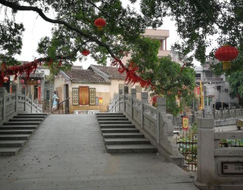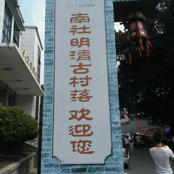 南社明清古村落全村面积约6.9平方公里,现籍人口逾三千人,是茶山一带乃至东莞较大的村庄,其维持明清格局的古村落现存祠堂达22间,古民居超过200间,是珠江三角洲难得的明清建筑和文化古址。 这里明清时代人才辈出,先后涌现了9位进士,至今保存着大量未经破坏的建筑和具有艺术价值的雕刻文物。其中以夯土、红石做墙基、以青砖砌筑樵楼的古围墙,以及传统三开间三进院落布局的谢氏宗祠均为其代表性建筑,值得一看。 百岁坊是为纪念百岁的四位老寿星而建,大家看它飞檐斗拱,古朴壮观,重修这作牌坊时却运用砖木,雕花榫铆,谨依原样,所以很好地保存了当年的风貌。旁边还有百岁翁祠,是一位百岁老人遗命用自己所居古屋改建的。资政邸,是光绪年进士,官至礼部主事的谢元俊的府邸。它坐落在小丘之腰,石级,栏杆还保持着当年的气派,两廊的花楣精美绝伦,厅中的垂花门镂刻着花卉群鸟,上面的孔雀尾、凤凰头都凸出木外,栩栩如生。