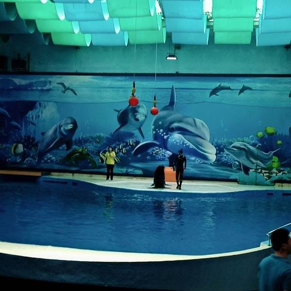 海豚馆可以一次性容纳1000多人观看海豚表演。海豚训练师把这些海豚儿训练的非常聪明,作出的表演也是很精彩给力的,很值得来看一看的。