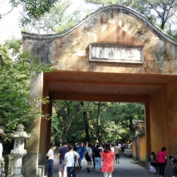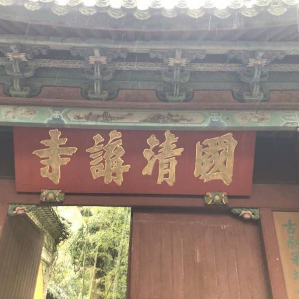 国清景区位于天台县城北3公里处,这里的是依据天台宗创始人智者大师亲手所画的样式而建,寺中古树参天,是中国天台宗祖庭,也是到天台的游客必到的景点。虽然每天来此的游人络绎不绝,仍保存着佛门的清静味道,这里没有叫卖香火的小贩,却尚能看到、唐樟、宋藤等历史遗迹,漫步其中,给人从容自在的感觉。 走到景区大门口,沿着主干道前行,走过一小片稻田,大约五六百米后才是寺院。若不愿步行,也可乘电动车代步。过牌坊右侧有7座石塔,附近有小路可通向山上的。拾级而上,不用多久便能来到塔前。驻足仰望塔身斑驳的色彩,让人心中充满宁静。欣赏过,可原路下山继续前去游览。若是想要拍全景,不妨从边走上山,视野开阔。 过,看过唐樟,经丰干桥便是山门。寺外照壁上“隋代古刹”四个大字是寺院值得称道的标志,许多游人在此留影。在旁边的售票处购香花券后即可入寺游览。 整个寺院依山而建,自下而上大致可分为三部分。寺门很小,横匾上书“国清讲寺”,常因游人太多显得拥挤。入寺后见到的一座殿为弥勒殿,往后是雨花殿、国清景区-大雄宝殿,是游人香客较为集中的地方。国清景区-大雄宝殿内供奉着释迦牟尼佛和十八罗汉,是寺院的主体建筑。 国清景区-大雄宝殿右侧有一条小路通向,古梅树粗壮虬劲的枝干亦是寺院历史的见证。过往高处走,便是寺院,殿旁有锡杖泉,再往上走即是较高层的,里面供奉着千手观音像。附近的内,供奉着智者大师等中韩三位开山祖师的塑像,石身铜顶的法华经幢上面的题刻也是名家手笔。这里是寺院的高处,在此透过殿宇的层层飞檐回望山下的,别有一番滋味。 从左侧下山,经过三贤殿回到国清景区-大雄宝殿,顺着通道往西不远便是王羲之的独笔鹅字碑,一笔写就的“鹅”字浑然天成。继续往前还有、、等建筑,可简单浏览。往出口方向走,过的喷水池不远便能回到出口附近的弥勒殿。沿路虽无更多建筑可观,但路边盘根错节的宋藤、横着生长的古树也是少见的自然景观。若想体验佛门生活,可在寺内吃吃素斋,午餐大约在10:30-11:00。