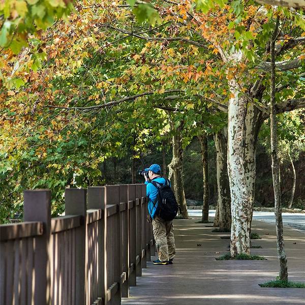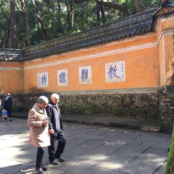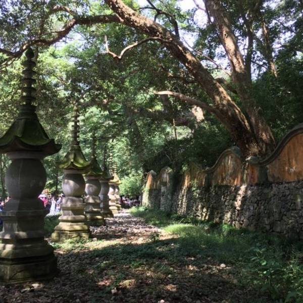 从游客中心下车,远远的就看到了一座古塔,古塔为国清寺隋塔,原名报恩塔,始建于隋开皇十八年(公元598年)。国清寺隋塔往国清寺还要走一小段路,路旁的银杏枝繁叶茂,有些已开始泛黄,仿佛一条时光隧道,带我穿越千年历史。天气很好,斑驳的光影印在古老的围墙,仿佛一道道岁月时光。寺院门前的七佛塔与其他寺院不同,进国清寺寺必须转九十度走侧门,寺院正面前方是一块照壁,“隋代古刹”四个大字引人注目,关于“随”字为何没有走字旁,据说当年隋文帝杨坚原为随王,但“随”字的“辶”意思有忽走忽停不稳定之意,于是他便弃了“辶”,创了“隋”这个新字作为王朝之名。电影《少林寺》曾在这取景拍摄。寺内香火旺盛,蓝烟缕缕,阳光透过古树,洋洒在大殿前。从雨花殿右侧穿过一圆洞门,看到了当年灌顶禅师亲手栽植的隋梅,距今已有1300多年历史,树干苍老遒劲,经历了千年人事更替,却依然傲立墙头。放生池游走在国清寺,给我最大的感受就是这里很清净,即便游客很多,也没有感受到一股喧嚣,每个人都心存敬畏、虔诚。没有太多的言语介绍,朋友们若来到国清寺就好好让自己的身心一同净化在这清新绝尘的圣地吧。