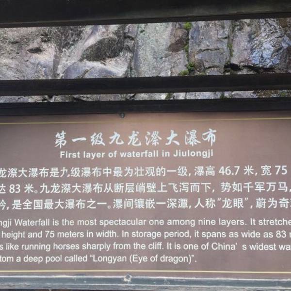 属省级风景名胜区。位于周宁县七步乡,距城东南14公里处。由九级大小瀑布组成,总落差为300米。传说古时有九龙聚州,形成9个龙潭,因而得名。