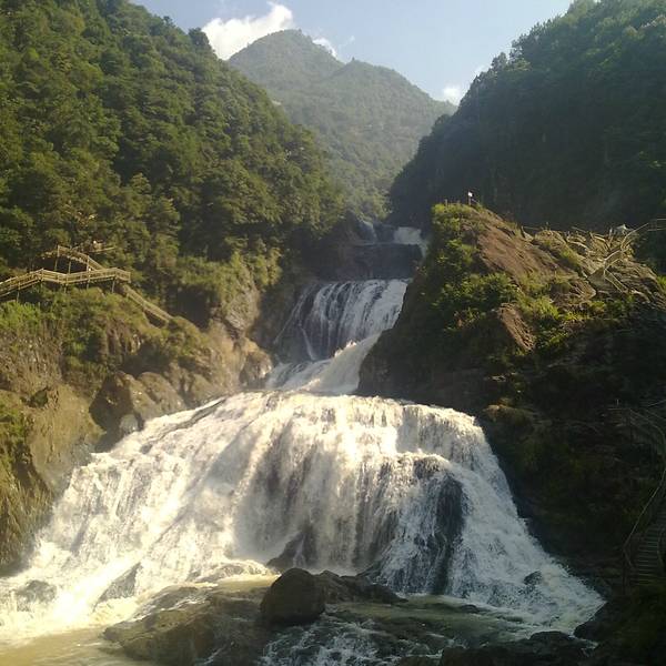 声势浩大,值得一看,就是路途有点艰辛,去时一路向下倒还轻松,回来就要一路向上攀爬了,不过还是值得一去号称华东第一大瀑布,果然名不虚传,现场观看气势磅礴,只见宽大的瀑布飞流直下,水花四溢,声势浩大,值得一看,就是路途有点艰辛,去时一路向下倒还轻松,回来就要一路向上攀爬了,不过还是值得一去。