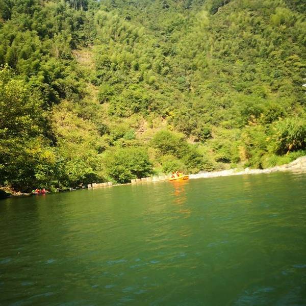 两岸风景很漂亮,漂流距离也很长,下游端有免费接返车,而且随时发车,非常方便!漂流过程水速比较平缓,非常适合小朋友亲子游!还有免费停车,也很方便!还有建议去玩可以提前通过网络平台订票,比现场优惠!如果到现场再选择网购,需要等一个小时后方可用,所以建议提前买!漂流全程大约1.5小时左右!快慢自己可以控制速度,有漂的刺激,也要划船荡悠悠的悠闲⋯⋯