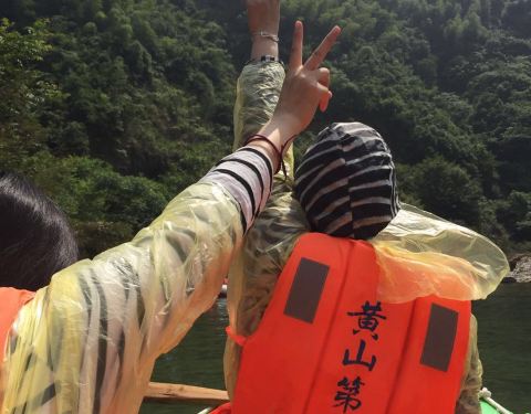 夹溪河漂流是我们从西递出来后沿途遇到的,它不是我玩过最刺激的漂流,却是我玩过的最开心的漂流,因为我们有九个人,打水仗打的好开心,我还偷偷的把手机带在了身上,用塑料袋裹了好几层,事实证明是行的通的,因此留下了许多珍贵的回忆。 夹溪河漂流素有黄山第一漂的美誉,位于黄山市休宁县205国道旁,路边树立着一个很大石碑,路过的人应该都不会错过,哈哈!(好像打广告的啊,其实不是),周边的景点有西递、宏村、九龙瀑和翡翠谷,车程都在半个小时内。夹溪河漂流的门票是120元,但是网上预订只需80元,很多网站都可以预订,而且可以预定游玩当天的,绝对的金玉良言哦!夹溪河漂流的游客不是旅行团的,就是自驾游的,不然交通真的很不方便! PS:带点零钱放在身上,沿途有卖姜汤的!