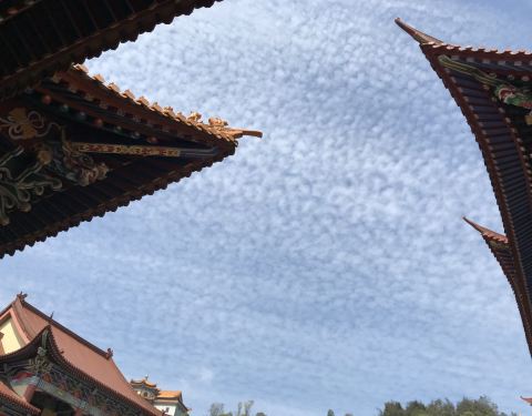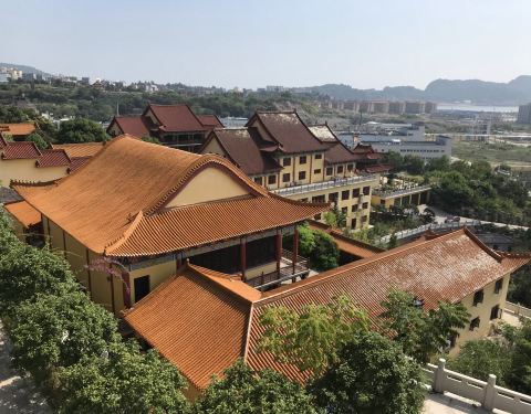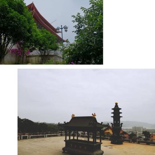 整个寺院气势宏大,场面壮观,寺院建筑有几分皇家园林的色彩,依山而建,恢弘壮丽,那天我们去的时候,正碰上祥云高照,瑞彩充满了整个寺院上方的天空,给人带来一种温暖幸福快乐的感觉,好运气带给了我们,结果第二天我们十一点半就开车回到家里了,一路上一点都不堵车,顺风顺水顺顺利利平平安安健健康康快快乐乐的在温州旅游度过了美好的七天时光