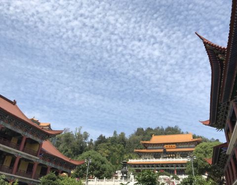 整个寺院气势宏大,场面壮观,寺院建筑有几分皇家园林的色彩,依山而建,恢弘壮丽,那天我们去的时候,正碰上祥云高照,瑞彩充满了整个寺院上方的天空,给人带来一种温暖幸福快乐的感觉,好运气带给了我们,结果...