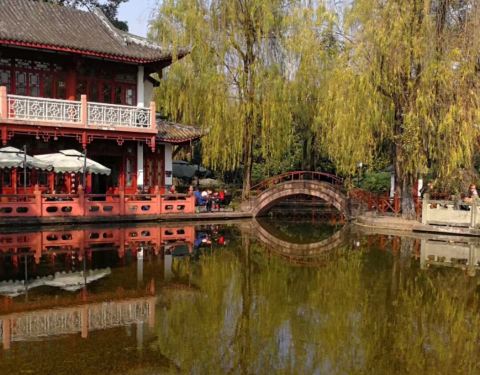 来了数次成都,也是这次在当地朋友的带领下才知道:宽窄巷子旁边有一个青羊宫,青羊宫后面有一个漂亮的百花潭公园,不收门票景色美,堪称繁华都市下的世外桃源~现在的百花潭公园始建于1881年,距今已有一百多年的历史,但其前身却可以追溯到大唐时期,文字记录的历史已超过千年,只可惜后面在河流改道、淤泥沉淀等各种因素影响下,原始的百花潭逐渐消亡于历史中,只有这一处新修的留了下来。公园引入了南河的河水,在园内挖出了大大小小数个水池,每一个水池旁边又修建了阁楼、石桥等建筑,打造出了一连串的观景点。百花潭是西郊河和南河的交汇处,两条河流汇水时形成巨大的白色水花,所以取名叫做【百花潭】,百花潭公园内建筑、水潭都很漂亮,重点是游客还非常少见,想怎么拍照就怎么拍。对了,这里的茶馆环境挺不错的,有时间的话约着来喝上一杯吧~ 展开