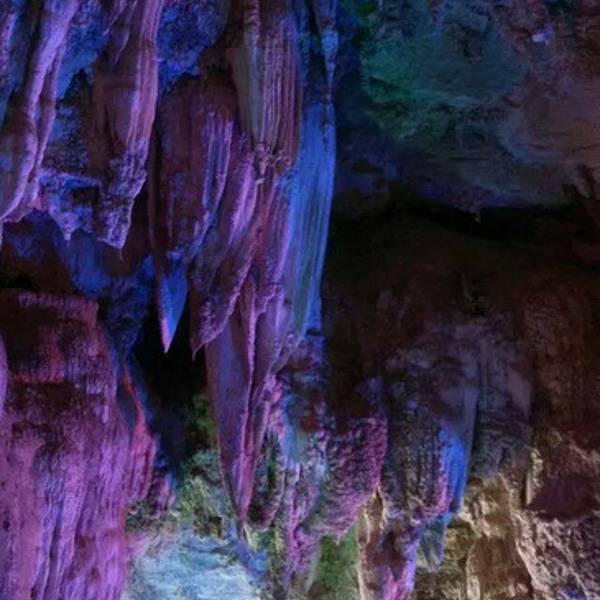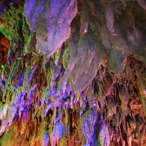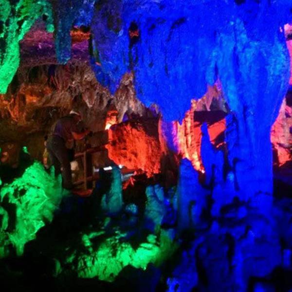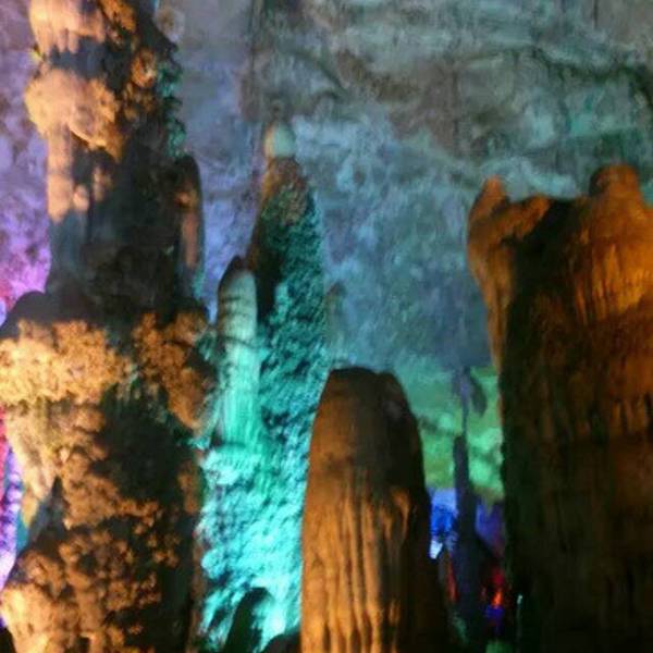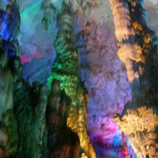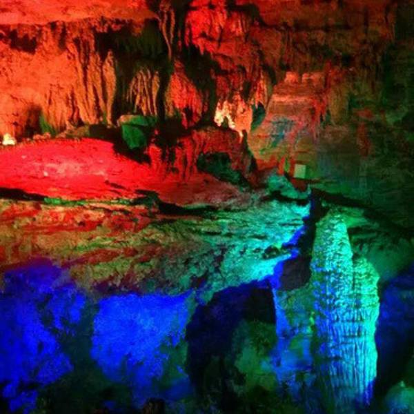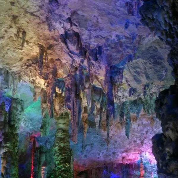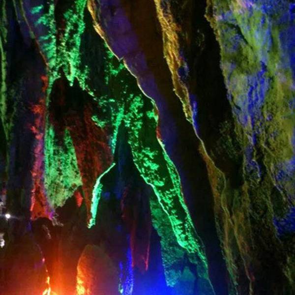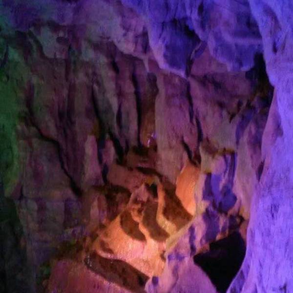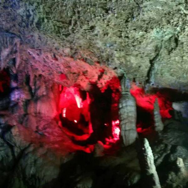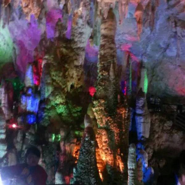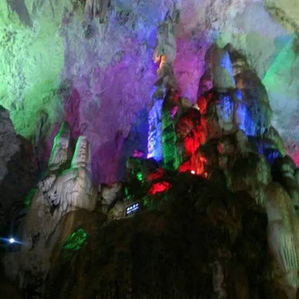 当我进入洞口时,便开始了对这个斑斓色彩的溶洞的探索。巨大的洞室,洞中有神田、石钏乳、石笋、石柱、石坝、穴珠卷曲石、钙板以及水流冲刷形成的峡谷、旋穴、角石,有的宛若游龙摆动于洞穹之上,有的在光线照射下折射山璀璨的色彩。溶洞内有不颜色的灯光照射,在色彩缤纷的灯光映射下,溶洞里的景观堪称壮观。我和小伙伴们目不暇接的边走边看,还不忘记拿出手机收集这些美丽的、参差不齐、怪模怪样的石头照片。