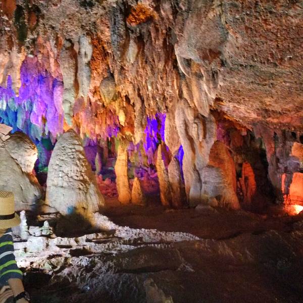 金骆驼 这里出名的是地下游,主要游览溶洞,由于溶洞数量多,坐船兼步行,大约要游览1个小时在昆明火车站没有直达车到九乡风景名胜区,考虑到转乘比较浪费时间,所以在火车站包车过去,没有和司机讲价,4人共200RMB。景区内植物很多,所以蚊虫也比较多,要带上防蚊水。这里出名的是地下游,主要游览溶洞,...在昆明火车站没有直达车到九乡风景名胜区,考虑到转乘比较浪费时间,所以在火车站包车过去,没有和司机讲价,4人共200RMB。景区内植物很多,所以蚊虫也比较多,要带上防蚊水。这里出名的是地下游,主要游览溶洞,由于溶洞数量多,坐船兼步行,大约要游览1个小时。溶洞里面温度比较低,里面装着五光十色的灯,有些商品店开在溶洞里面,纪念品价格很高。溶洞里面有一个很大的鱼缸,里面养着一些珍稀鱼类,叫做盲鱼。快到出口的地方有一个小卖部,可以在这儿歇息一下。在园区内,有一些彝族的小吃以及小饰品销售,在这里特别推荐彝族的香肠,有很多种,洋芋猪血肠、青椒香肠等,这是特殊的味道,不一定适合我们广东人口味,但是来到了一定要试一下。 展开
