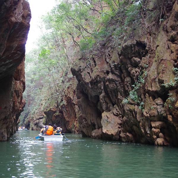 九乡风景区位于昆明市东,宜良九乡彝族、回族乡境内,是以峡谷溶洞景观为主,洞外自然风光、人文景观、民族风情融为一体的综合性风景名胜区。评为国际洞穴协会会员,有溶洞之乡之称,拥有云南省规模最大、数量最多、类型最全的洞穴群落体系,现已发现的溶洞有90多个,以雄、险、奇、美等特点著称。【游览】准备进入惊魂峡【美食】九乡长盛不衰的是宜良传统烤鸭,宜良烤鸭皮脆、肉香、骨酥,有一百多年的历史,是根据北京全聚德烤鸭演化而来的一道传统菜肴。
