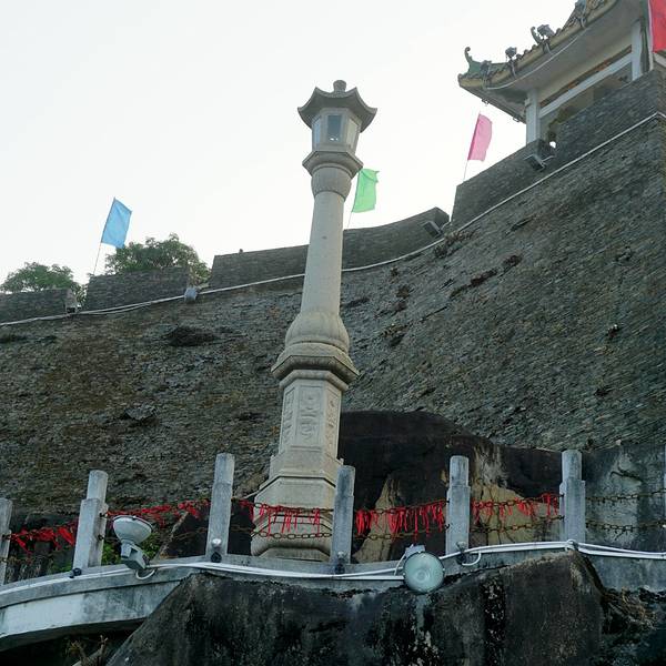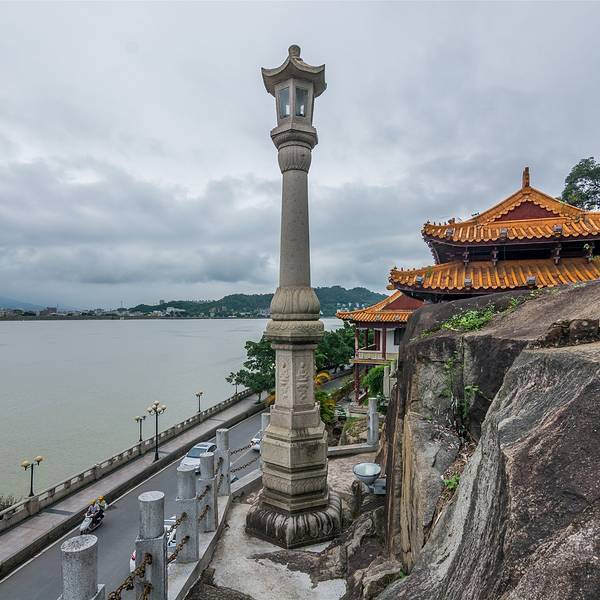 北阁景区与北阁佛灯北阁是金山东面的一组楼阁的总称。这里地理位置独特,古城墙在此揽绕金山,亭台楼阁高低错落,曲径幽深,东临急转直下的韩江流水,高览低俯均是别致的景色,堪称岭南一绝。凳临北阁,北堤上“鳄渡秋风’,隔江相望的“韩词橡木”,韩江下游的“湘桥春涨”,“凤凰时雨”诸多胜景历历在目,俯览韩江,江流滔滔,白帆点点。 北阁景区,辟建于宋,形成于明,历代均有兴废。迎澜亭为景区人门第一景,圆攒尖式亭体,亭顶辅以黄琉璃瓦,亭内安环形石凳,可供游客小憩。原广东省省长刘田夫题匾:“?澜亭”,并重书请人姚竹园对联:“折地河声奔足底,脱天峰影落城头”。韩江楼背倚城廓,面临韩江,楼高二层,面宽三间,俄棚屋面装点金黄瓦片,红柱丹墙,雄伟壮丽。著名学者饶宗颐为其题额“韩江楼”,并重书对联:“忠贞亘,万古而有光何用别求自己义勇垂两间干不眼,既此便是青天”。楼中重塑关羽、关平、周仓组像,形神兼备,栩栩如生。玄天阁面阔三间,进深三间,斗拱抬梁大木结构,重檐歇山顶,红墙黄瓦,金碧辉煌,巍峨壮观。著名书法家秦乌光为其题颇:“玄天阁”,并重书对联:“一江壁立擎天柱,百道泉飞洛地维”。阁中重塑玄天上帝立像一尊,披发仗剑,威风凛凛。中国传统文化的“周易”中,人世间的东、西、南、北四个方位都有各自的保护神,也就是民间常说的东青龙、西白虎、南朱雀、北玄武,潮人在城北建北阁,供奉北帝,故称“玄天阁”。阁北侧高耸石佛灯塔,座高7米,仿唐代的石经幢造形,三层六角,四周雕饰佛像、莲花、云纹.