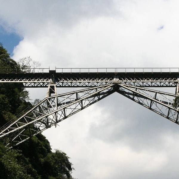 滇越铁路和苏伊士运河巴拿马运河并称为世界三大工程奇迹。而五家寨人字桥是滇越铁路修建过程中最艰巨的工程之一。人字桥又像一把张开的剪刀,据记载是当时的法国工程师从剪刀上得到了灵感。