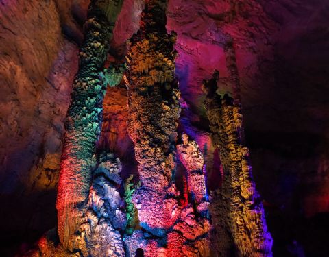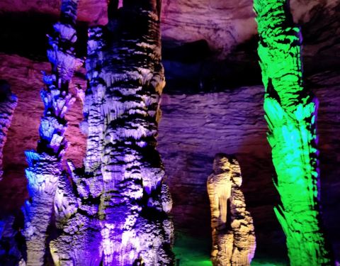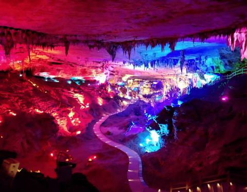 ...才走到洞口就感到阵阵凉风吹过,绝对是避暑旅游的好选择,洞里面变幻的彩灯照射下的石笋石花形态各异九龙洞是个天然的大洞穴,才走到洞口就感到阵阵凉风吹过,绝对是避暑旅游的好选择,洞里面变幻的彩灯照射下的石笋石花形态各异。