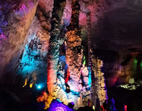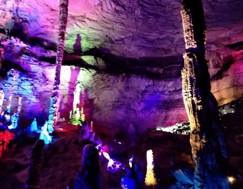 洞里的景色还是很漂亮的灯光打的好,对大自然的鬼斧神工很是震撼,有导游带队,边走边讲和朋友一起去的,要想去洞里首先要坐快艇过河,5块钱一个人,感觉走点坑,然后上山,走路可能半个小时左右,路还是挺好走的,体力不行的话也有马,可以坐马,价格不是很清楚。洞里的景色还是很漂亮的灯光打的好,...和朋友一起去的,要想去洞里首先要坐快艇过河,5块钱一个人,感觉走点坑,然后上山,走路可能半个小时左右,路还是挺好走的,体力不行的话也有马,可以坐马,价格不是很清楚。洞里的景色还是很漂亮的灯光打的好,对大自然的鬼斧神工很是震撼,有导游带队,边走边讲。 展开