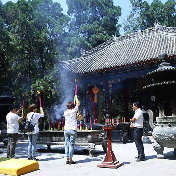 黄帝陵景区的大门位于黄陵县城北的桥山脚下,穿过公园内印池里的一座石桥,便是轩辕庙。在池塘边拾级而上,来到轩辕庙山门,穿过山门便进入轩辕庙内。在轩辕庙大院内可以看到黄帝手植柏、碑亭、碑廊等历史遗存和建筑,最后来到一座气势雄伟的大殿前,即轩辕殿。大殿门外有一尊世纪大钟,以及一组青铜大鼎。黄帝陵景区的轩辕殿是一座新建的现代建筑,雄伟、宽阔。进入轩辕殿,里面是一个空旷的大堂,中间挑空,没有一根立柱支撑。大殿的中间有一座现代雕刻的石碑,上面有黄帝的图像和纪念碑文。屋顶上还有一个圆形透空的穹顶,可以看见天空。黄帝陵景区内黄帝陵园位于桥山的半山坡,距离轩辕庙有一段山路,可以乘坐景区内的电瓶车前往,可以节省步行的时间。半山坡上的黄帝陵园是一处真正的历史古迹,拥有众多的文物。在黄帝陵园门外,所有车辆不得进入,立有一块石碑“文武百官至此下马”,游客必须步行参观。游客沿着黄帝陵园内的甬道步行前往黄帝陵,陵园中遍植年代久远的柏树,还有供奉历朝历代黄帝陵石碑的亭子。中间经过几道山门,在陵园的最深处便是黄帝陵的墓地。作为华夏子孙,有机会的话一定要到黄帝陵祭拜一下。 展开