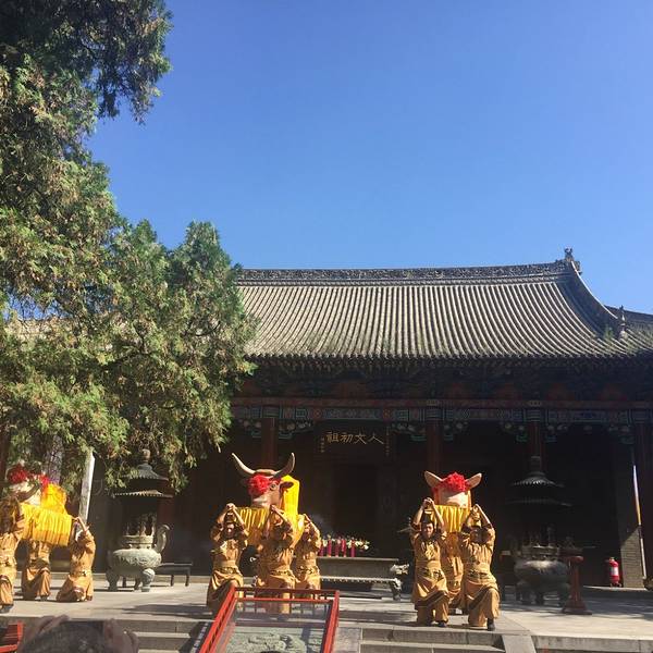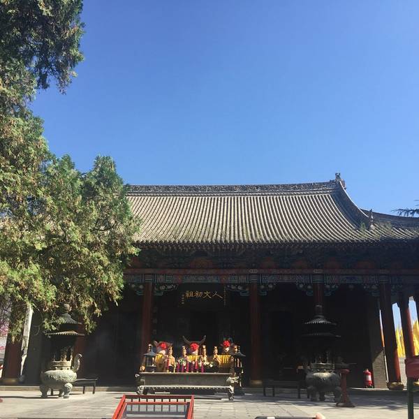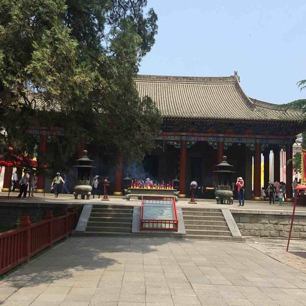 在这里票务大厅买票换票,网上售价80元一张(只接受官网预定和携程预定票),在这买票90元一张,去的时候人不是很多所以很快。在票务大厅的门口有景区的游玩线路图这里就是黄帝陵了,有很多人在这里拍照留念,每张照片10元。在景区的门口有一个非常大的人工湖,可以坐游艇游玩20元一个人,也可以自己开,湖的面积很大开了好一会,非常的刺激。最主要的是湖水非常的清澈,站在桥上看远处的风景非常的漂亮,碧水蓝天。这就是景区的大门口轩辕庙进入景区,可以看到一颗参天古树,据说是黄帝当年亲手种的,距今有大概5000年的历史,树的主干大概要10个人左右才能围住。在旁边有一个小摊,买一些纪念品,有中华百家姓姓氏图腾,每一个姓氏图腾的图案都很独特以及各自姓氏由来的故事。进入到里面正好有仿古祭祀活动的表演,观看的人很多。祭祀活动很庄严,感觉自己穿越回了古代,正在亲身参加祭祀活动。在旁边还有据说这是当年黄帝的脚印这里就是黄帝陵墓了 展开