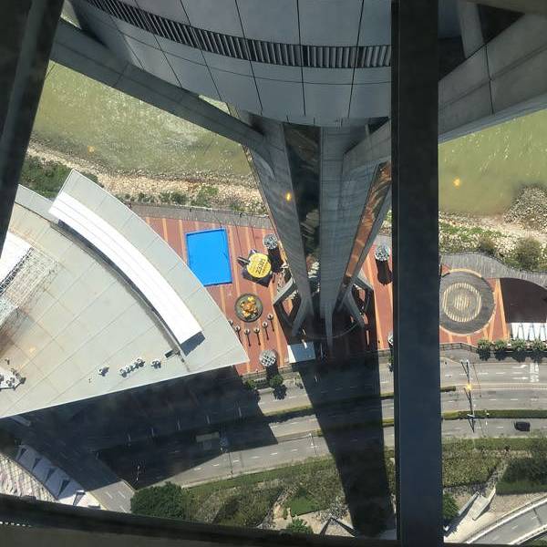 观光层位于58楼,在这里不仅可以360度饱览澳门的景色,更可以体验“悬空”的惊险感受,因为脚下有透明的玻璃,很刺激。
