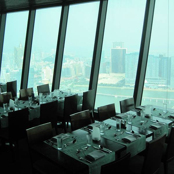 澳门塔集观光、会议、娱乐于一体,是多功能的公共建筑。走过大厅,那些有趣的装饰与吉祥物不时吸引眼球。搭乘高速电梯,几分钟内就能到达360°旋转餐厅层,在这里可以边看着窗外的景色,边品尝一份下午茶套餐,实在惬意。