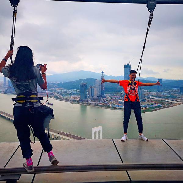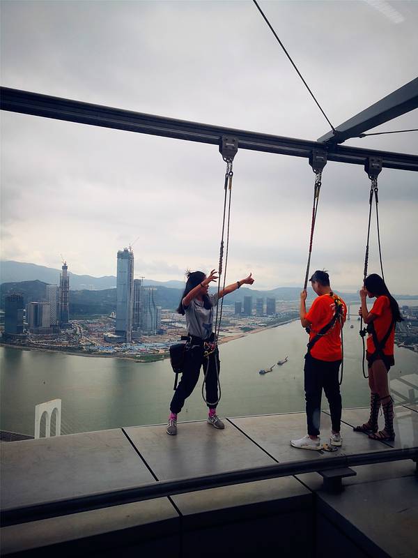 澳门塔除了观光、餐饮等还有娱乐项目,包括:百步登天、空中漫步、高飞跳(Sky