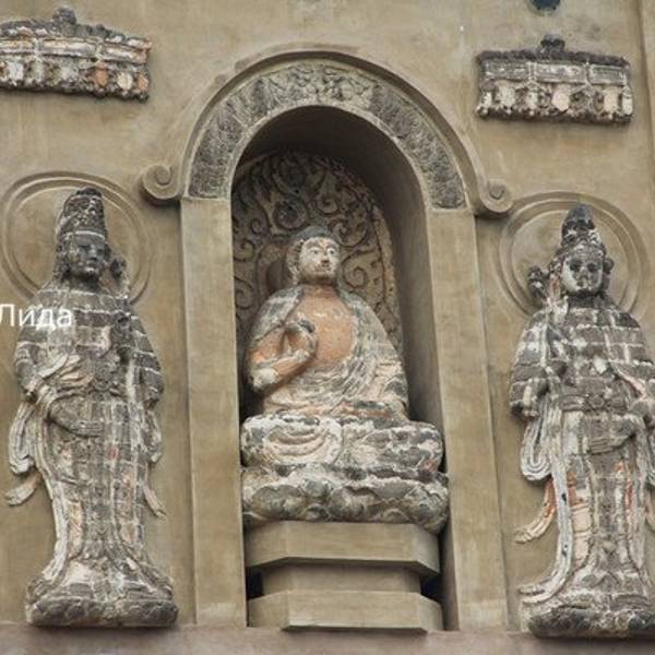 北镇县城东北隅座崇兴寺前并立着两座风格一致,秀丽挺拔的辽代古塔。两塔东西相距离43米。东塔高43米,西塔高42米,均为八角十三层密檐式实心砖塔。基座每面宽7米,基座上雕有各种花纹,下部雕有狮子、负重力士和莲瓣。向上为仰莲座,座上承托塔身,塔身每面有拱龛,内雕坐佛,外立侍卫,上饰华盖、飞天和铜镜。塔檐十二层,由下至上逐层内收,每层檐角俱挂有风铃,随风摇动,声音清脆悦耳。塔顶的莲花座、宝瓶、鎏金刹杆、宝珠、相轮均保持得相当完好。西塔的中部还镶有明万历二十八年(1600年)《重修崇兴寺塔记》小石碑。1963年崇兴寺双塔被列为第一批省级文物保护单位。