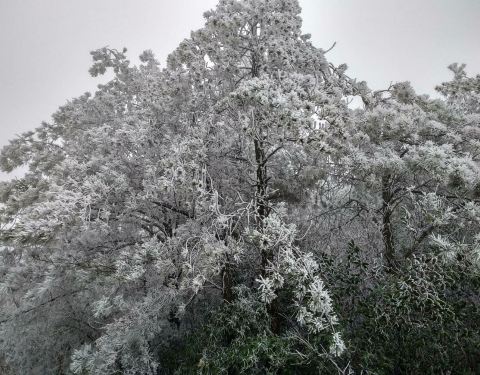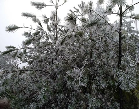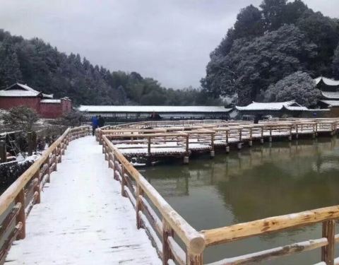 今年茫荡山景区有点冷啊,下起小雪景色不错有空可以上山看看。