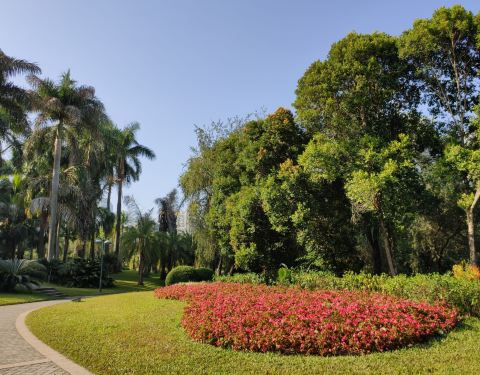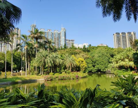 空气清新,位于市中心,闹中取静,公园里面还有一些很知名的树木,不定期还有一些花展什么的,还挺好看的,周边逛街吃饭挺多的,适合周末约闺蜜一起的
